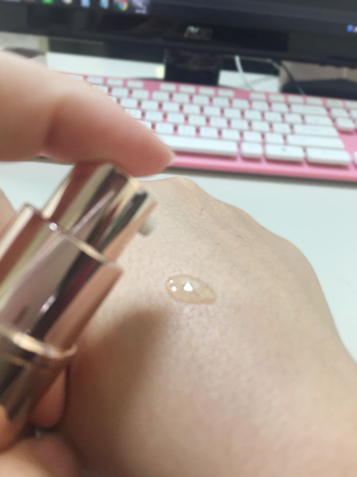 照片其實我只有壓一滴出來 大概黃豆般大小 一下就散開 而且手的皮膚已經開始吸收